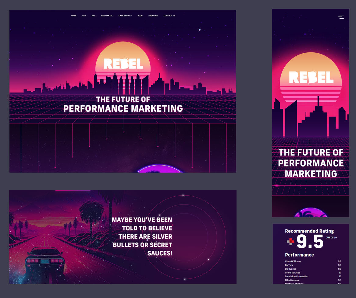 The REBEL website was to be evolved into a dynamic, engaging platform that authentically represented the brand. A brand identity workshop would be required to develop ideas surrounding visual storytelling and interactivity, before creating custom graphics and illustrations that support the newly refined identity. It was essential that the finished site be responsive and easy to use on all devices.